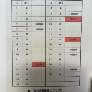 (毎月第1日曜日は営業) - お休み