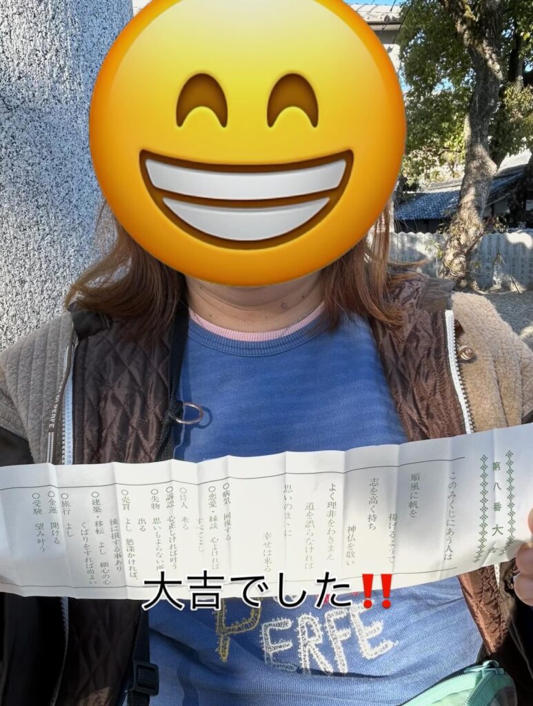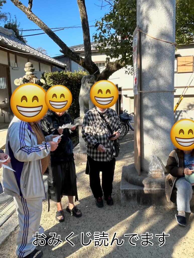 6日(水曜日)にご利用者様と一緒に初詣に行ってきました。ご利用者様と職員一同、今年の健康を祈願しました。皆様お気に入りの御守りを購入し、おみくじを引き誰が大吉を引くか盛り上がっていました!!本年もご利用者様の健康第一と笑顔を大切に頑張っていきますのでご協力のほど宜しくお願い致します。