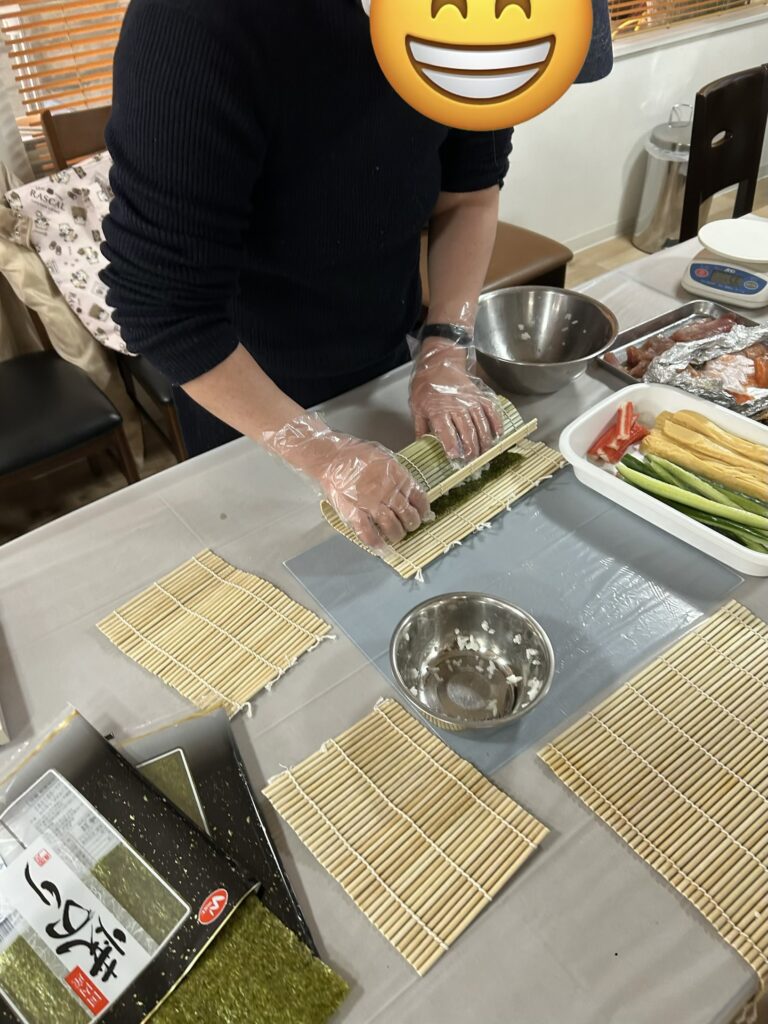 本日は節分でご利用者様と職員と一緒に巻き寿司を作りました