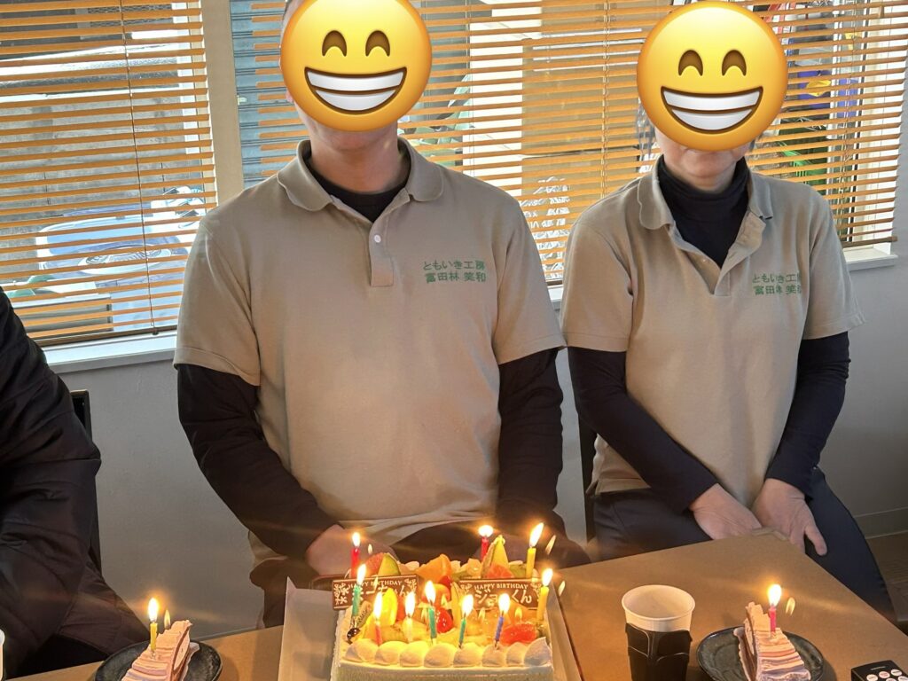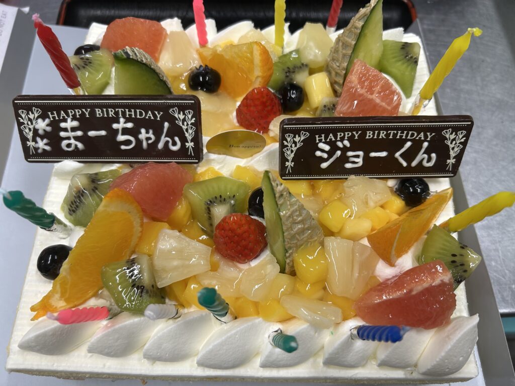 食事の後、職員さんのお誕生日会を開催し笑顔いっぱいの1日でした