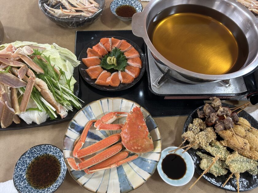・カニすき鍋 ・茹でズワイカニ ・サーモン造り ・串カツ盛合せ
